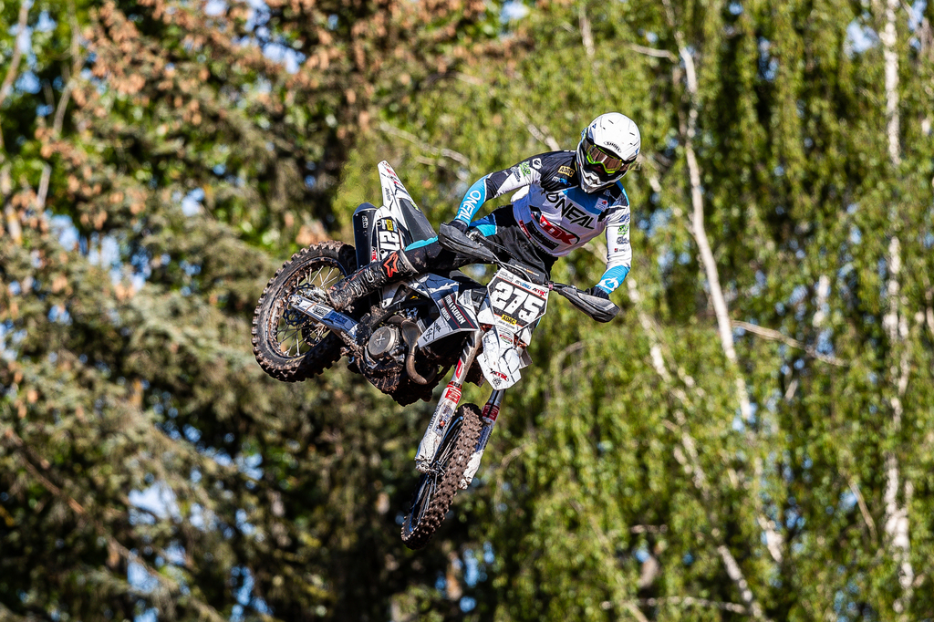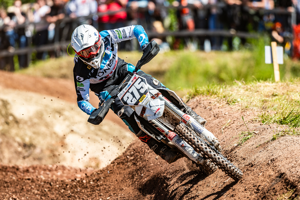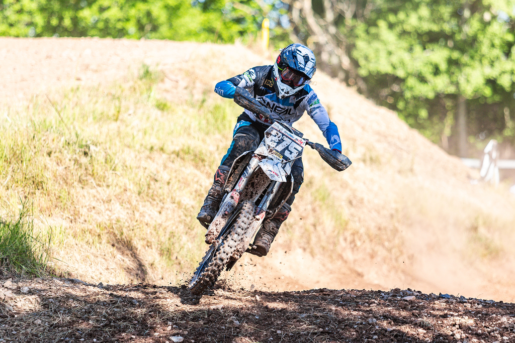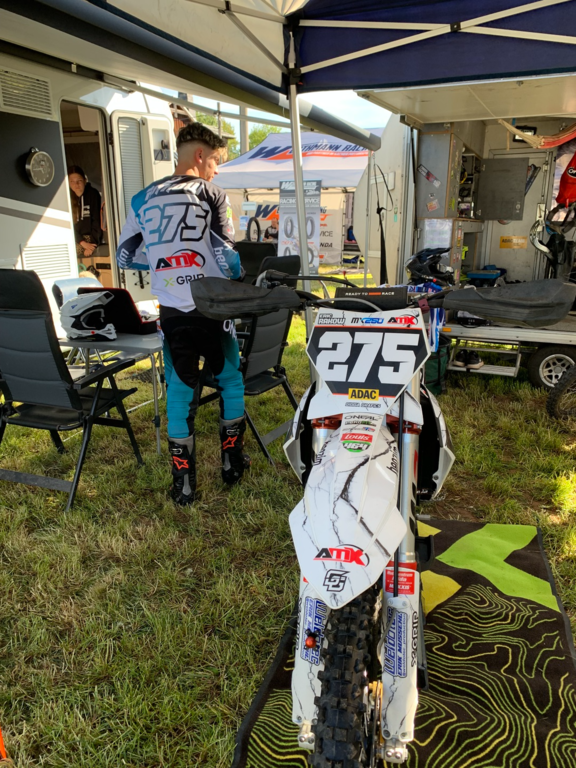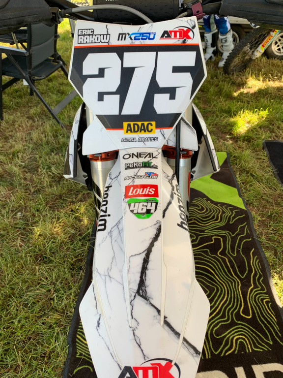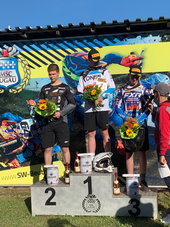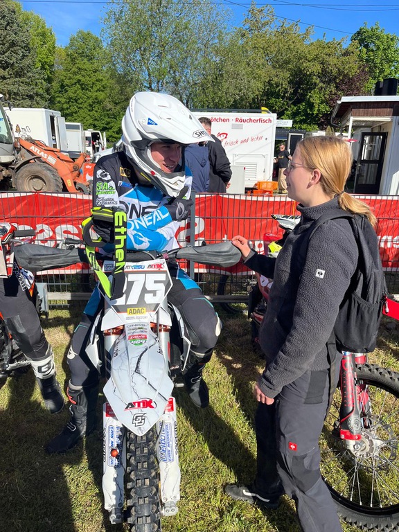 Erster Lauf, ich war überrascht wir gut der Start funktioniert hat, ich konnte sogar den Holshot holen. In den ersten Runden konnte ich mich mit Linus Jung schon gut vom Fahrerfeld absetzen, auf Platz 1 liegend hieß es jetzt die Nerven behalten, dem Druck stand halten und sauber meine Runden zu drehen. Der Abstand wurde mal größer und mal wieder ganz schön eng, aber am Ende konnte ich mir mit Platz 1, 25 Punkte sichern.